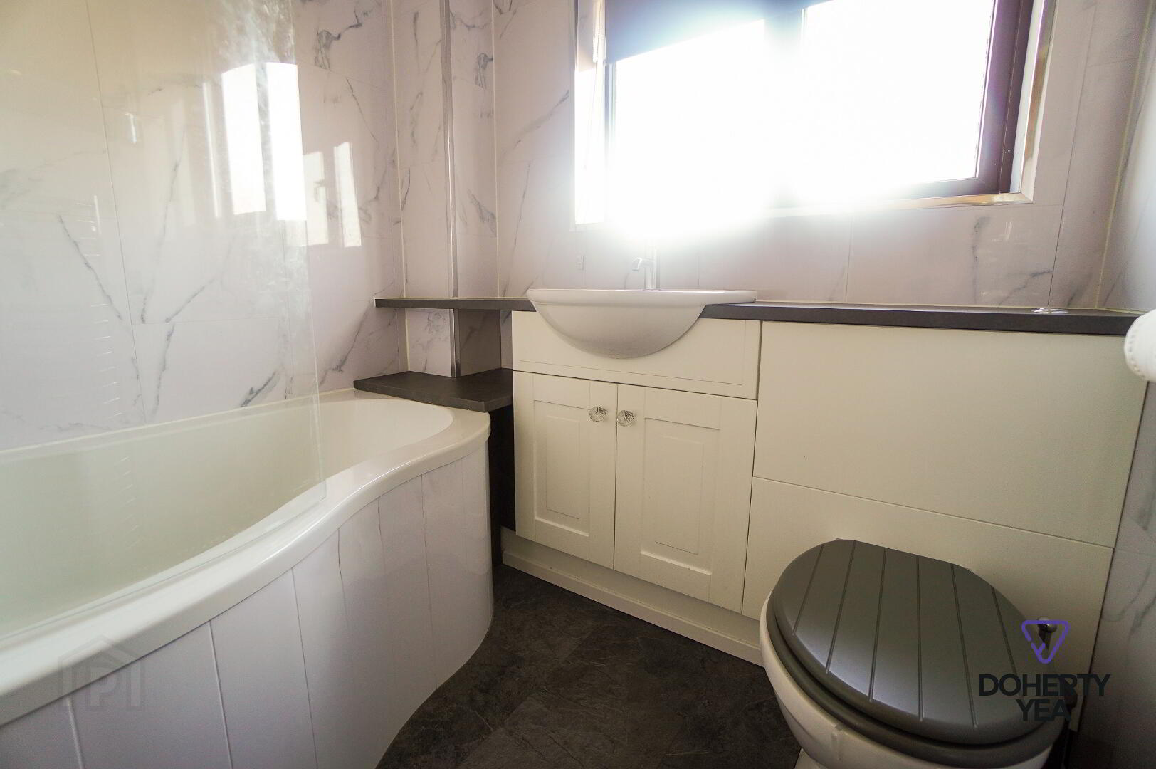 Bathroom with white suite.