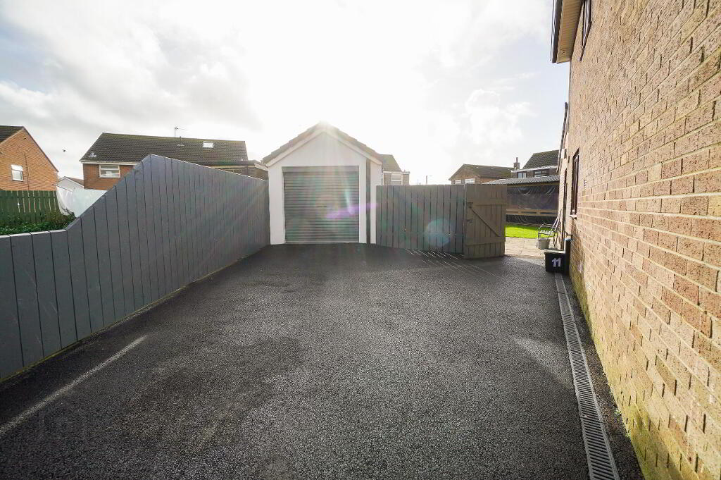 Generous site with fully enclosed rear garden and plentiful off road parking on newly laid tarmac drive.